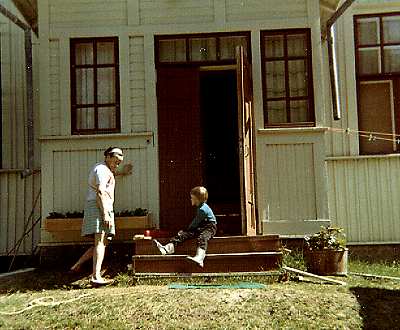 Kuten oheisesta länsipäädyn asunnon sisäänkäyntiä esittävästä kuvasta näkyy, olivat ulkoportaat melko matalat vielä vuonna 1970. Yläkoulurakennuksen kaikkien kolmen sisäänkäynnin ulkoportaat olivat hyvin samantyylisiä ennen vuoden 1971 remonttia. Ulko-ovien sisäpuolella olevassa kuistissa oli kuitenkin lisää portaita. Koulun sisäänkäynti on edelleen tämän tyylinen (kuistin ikkunat ovat kuitenkin poistuneet). Länsipäädyn asunnon kuistin sisällä olleet portaat ovat sensijaan remontissa poistuneet - ne on korvattu korkeammilla ulkoportailla.