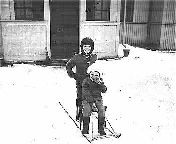 Yläkoulurakennus lähes valkoisessa värityksessään suunnilleen 1960-luvulla. Oikeanpuolimmaisissa kuvissa näkyvät koulun katolle johtavat jyhkeät puiset tikapuut. Lapsuudessani myös alakoulurakennuksen ja ulkorakennuksen tikapuut olivat vastaavanlaisia. Ja puulämmityksen aikakaudella niitä todella myös säännöllisesti tarvittiin, sillä nuohoojan (eli »nokikolarin») täytyi tuolloin kiivetä katolle päästäkseen käsiksi savupiippuihin. Puiset tikapuut korvattiin metallirakenteisilla palotikkailla joskus 60- ja 70-lukujen vaihteessa. Puutikkaat olivatkin tällöin ehtineet varsin huonoon - nuohoojan kannalta ehkä jopa vaaralliseen - kuntoon.