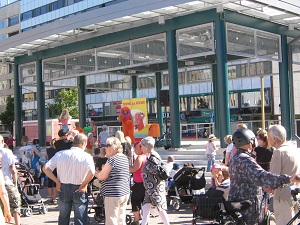 On joka tapauksessa hauska nähdä Porin torin uusi kiinteä rakennelma käytössä. Äänentoisto oli vähintäänkin riittävällä volyymilla. Linja-autopysäkeille asti kuuli että jotakin erikoista on meneillään. Pystyi siinä lavan lähistöllä kuitenkin jokunen sinnikäs torimyyjä vielä työpaikallaan pysyttelemään melko neutraalilla ilmeellä. Vai oliko heillä korvatulpat?