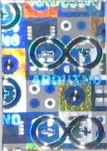 Tässä lopuksi muutama salamakuva yhdestä ja samasta Arduino Uno -pakkauksen hologrammista hiukan eri suunnista: