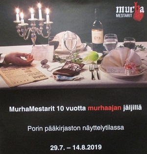 Näihin synkkiin ajatuksiin minut johdatti Porin kaupunginkirjaston näyttely josta muutama otos ohessa. Mukana on myös jotakin todistusaineistoa ja mahdollisia johtolankoja. Kyse tässä on vain leikisti murhaamisesta. Se on tiettävästi kivaa. Murhaaminen on suosittua viihdettä. Verta pakkiin vaan ja onnea.