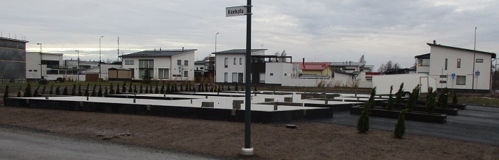 Koekadun varrella on uutta rakennustoimintaa aiemmin avoimella kentällä, entisen asuntomessualueen itäosassa. Kaupungilta päin tullessa huomaa ensin että teräslevystä irti poltetut ruosteen kirjavoimat, mutta sinänsä perustasolla insinöörin näkökulmasta suhteellisen ansiokkaat nautataideteokset ovat joutuneet luovuttamaan kumpareensa ja paaluaitauksensa paikan uuden talon perustuksille. Kaupungin periaatteena nähtävästi on 100% demokraattisesti ja tasa-arvoisesti markkinatalouden suosima pyhä arvo Euro ja ääni sekä myös kulttuuripiirien näkemyksen vastaisesti vita longa, ars brevis .