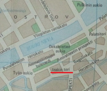 Minulla oli sellainen käsitys että hotellin nimi oli "Leningradskaja", mutta ei sen nimistä ainakaan enää ole olemassa. Astoria on suunnilleen oikealla paikalla, mutta se kai on nykyisin varsin hieno hotelli?