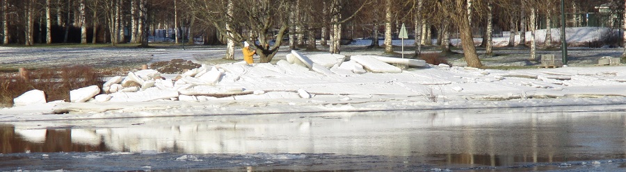 Talven valta on jo piankin voitettu, tältä erää. Viime kuinen jäitten lähtö Kokemäenjoesta oli kuitenkin niin vaikuttava ja yllättävä tapahtuma, että siitä on pakko vielä esittää pari viikkoa vanha kuva. Kirjurinsillan alla liikkuva kitisevä jäämassa jätti muistisoluihini lähtemättömän vaikutuksen. Se oli kuin jalkojen alla liikkuva mahtava taikamatto. Huimaava kokemus.