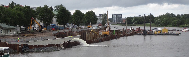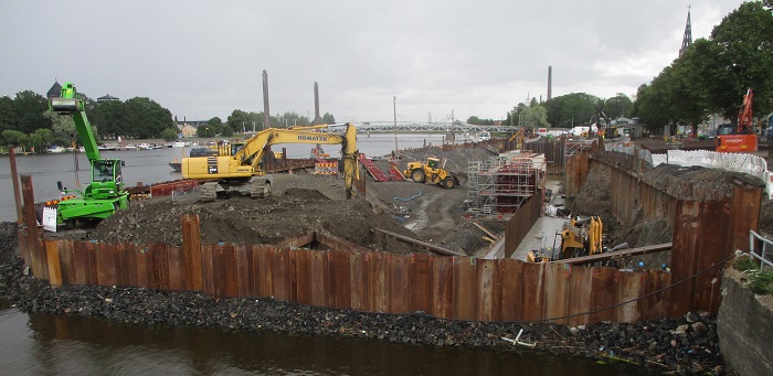 Ymmärtääkseni paikalliset ylen korkeat kulttuuripersoonat ovat nenäänsä nyrpistellen valitelleet ja paheksuneet kesän yleisötapahtumien yli joen etelärannalla jatkuvia Porin 'Jokikeskuksen' rakennustöitä. Mielestäni kuitenkin monet 'Taavi'-sillan yli kulkeneet turistit vaikuttivat rakennustyömaasta hyvinkin kiinnostuneilta. Luulenpa että 'Jokikeskus' voi hyvinkin olla Porille jonkinlainen valtti ja hyvä voimavara, vaikka sillä on ollutkin niin paljon vastatuulta.