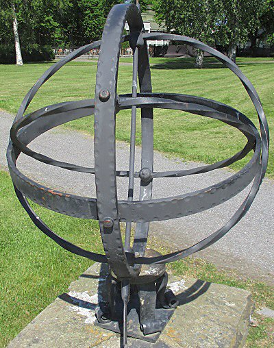 Tämän aurinkokellon osoittama aika arviolta näyttäisi olevan puoli kahdentoista ja varttia vaille kahdentoista välillä, eli 11:30 ... 11:45. Minkäköhän aikajärjestelmän mukaista aikaa se näyttäisi?