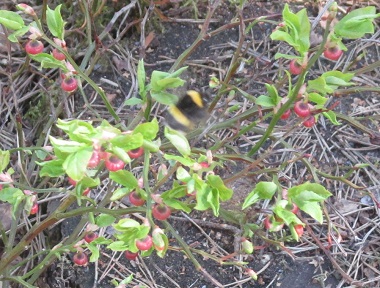 Hastaj sovaĝaj burdoj laboregas en violaj floroj de mirtelo en la apuda arbareto. Urĝaj helaj papilioj celkonscie aviadas tra aero en sia karakteriza iom necerta stilo. Mi ne estas tute konviktita ke ilia licenco por flugado estas en ordo kaj ke ilia alkohola enhavo estas nulo aŭ almenaŭ akcepteble malalta.