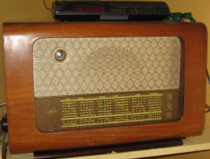 Dekstra foto montras la malnovan ricevilon de mia patro, nomo laŭ mia memoro Maestro Olympia. Ĝi laboras per elektronaj valvoj, jam malnova tekniko. Pli moderna tekniko estas Transistoro kaj Integra cirkvito.