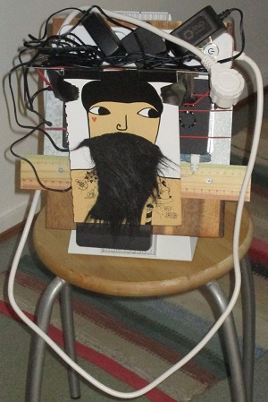 Dekstre vi vidas mian unuan 3D-fotilon sur tabureto. Jes, estas fakte fotilo, sed ĝi nediskuteble estas iom kaŝema kaj kamuflita. La stativo de fotiloj estas malnova "DURABLE 5683".