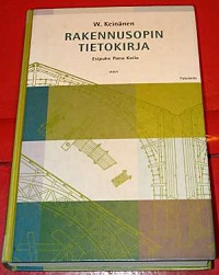 Apude estas fotita kovrilo de interesa finna libro pri tradicia domkonstruado, certe ne pri la plej nova povoscio de tio fako, tamen interesa. La enhavo de libro estas pli malnova ol la kovrilo. Novaj domoj povas esti tre multe aliaj, sed mi kredas ke simplaj bazaj reguloj estas ankoraŭ validaj. Burokratoj certe povas havi ilian propran opinion kaj evidente ekzistas multe da burokratoj en Finnlando. La novaj oficialaj burokrataj reguloj por konstruado estas iom altflugaj. Malmultekosta konstruado ne eblas en Finnlando.