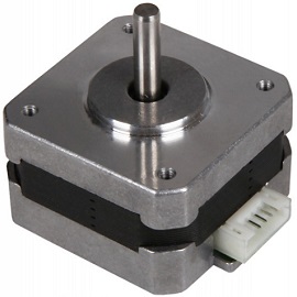 La dekstra iom pli granda kaj pli peza bipolar -stepper estas nomita "Joy-IT NEMA17-04 - 42SHD0217-24B", nominale por tensio 3,3 voltoj kaj elektra kurento 1,5 amperoj.