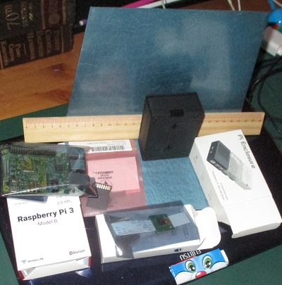 En apuda foto jam estas videblaj la plej gravaj fizikaj komponantoj por la unua el entute (espereble) sep fratoj, nomita Juho ... pardonon, estu la unua el la unuaj ĝemeloj, Tuomas. La tuta kosto por unu komputilo-fotilo proksimume ... iom malpli ol 100 eŭroj? La du unuaj aparatoj mi kredeble povos konstrui sen novaj kostoj.