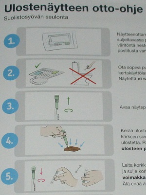 Eble oni povus instrui en moderna esperanta lernolibro por 60 - 68 jaruloj kiel facile kaj efektive hejme mem produkti la specimenon por esplori intestan kanceron? Nome, sen feki sur planko.