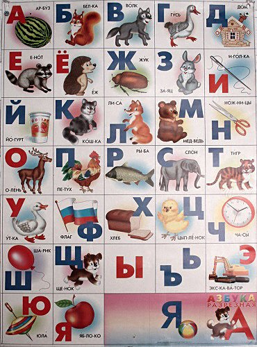 La rusa lingvo kaj rusaj literoj evidente estas parto de mia propra mem selektita destino. Apude estas fotita tabulo de rusaj literoj el la vando de loka popolaltlernejo. Kredeble ĝi estas plejparte intencita por infanoj, sed eble utila ankaŭ por pli aĝaj lernantoj de lingvo.