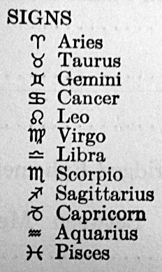 Unu grava afero certe estas la 12 simboloj por la signoj de zodiako. Oni nur komprenu ke ili ne estas stelaj konstelacioj de ĉielo, kvankam la nomoj estas parte similaj. Temas simple pri direktoj sur la zodiako, komence el la direkto de printempa ekvinokso maldekstrumen. Oni povas uzi kiel helpilo la artikolon Astronomiaj kaj astrologiaj simboloj.