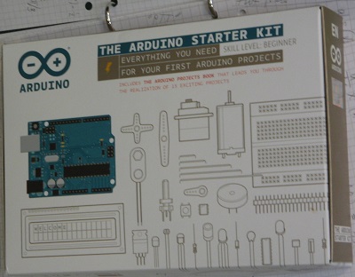 He, nun mi estas gaja posedanto de "The Arduino Starter Kit". Prezo estis ĉirkaŭ 100€, inkluzive "everything you need for your first Arduino projects". Arduino Uno estas ia malgranda komputero kiu kapablas gvidi ekzemple malgrandan elektran motoron, kun fonto de elektra energio, konvena komputera programo kaj eble aliaj partoj.